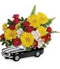 Get his motor running this Father's Day with this fun-filled flower gift! Red, yellow and white blooms burst from the back of a '67 Chevy Camaro, a sleek ceramic keepsake that's just about as cool as he is!