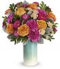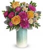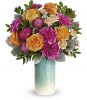 As alluring as the sparkling sea, this bright bouquet and stoneware vase with crackled aqua glaze is a stunning surprise for any occasion!