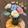 Soft, serene, and effortlessly elegant—Blue Belle Bouquet brings a breath of calm beauty into any space. Featuring lush white roses surrounded by delicate accent blooms and textural greenery, this design is arranged in a moody blue glass vase that adds a touch of depth and sophistication. Thoughtfully styled with a light, airy feel, it’s perfect for sympathy, everyday moments, or anyone who loves timeless neutrals with a modern twist.