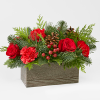 Inspired by the rustic charm that comes with the holiday season, elevate your décor with an array of fresh red blooms and greenery.