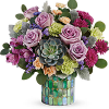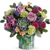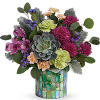 When only marvelous will do! Make a stylish statement with this unique bouquet of jewel toned blooms and succulents, artfully arranged in a stained glass inspired mosaic glass cylinder.