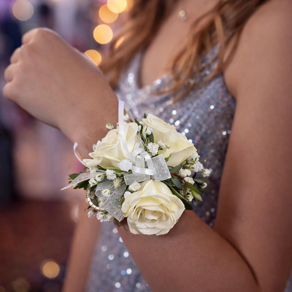 Every bouquet is finished with a your choice of double satin bow for a polished, picture-perfect look. A unique, modern alternative to the traditional corsage, this bouquet is the perfect finishing touch to your prom style.