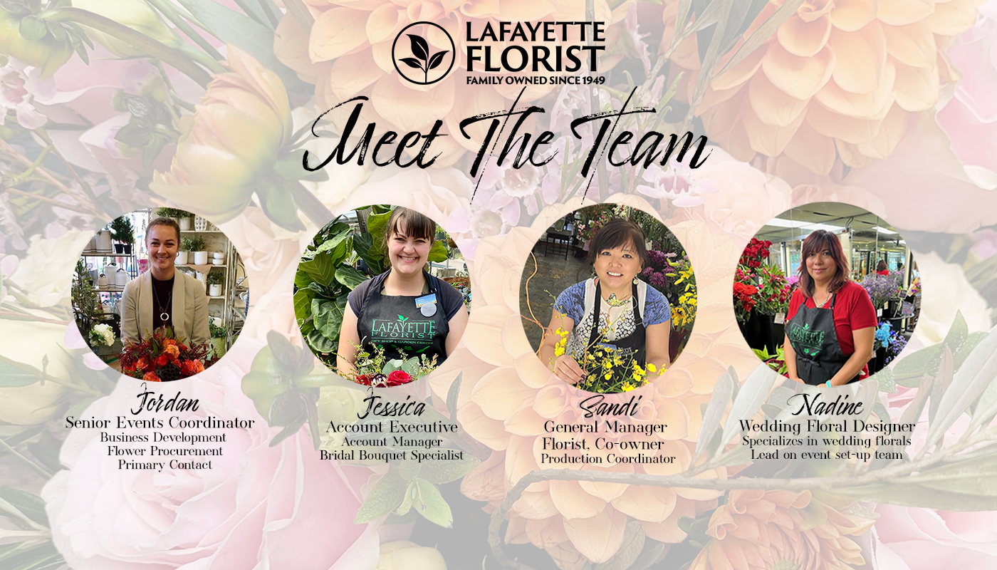 If you’d like more wedding information, please contact our wedding consultant, Jordan, at jordan@lafayetteflorist.com.